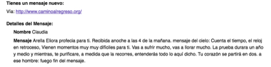 Y como prueba final, recibimos este mensaje de varios que mandó la señora Franco con amenazas de consecuencias si no retirábamos éste artículo, las cuales no proceden debido a que simplemente existe la LIBERTAD DE EXPRESIÓN…. por tener una atención a ella cortamos la parte donde viene su correo, pero tenemos los emails enviados que tienen su correo electrónico indicado como prueba que vienen de ella. Todos estos falsos profetas cuando se ven desenmascarados lo que hacen es mandar maldiciones…. a ustedes juzgar si una verdadera profeta de Dios que tiene el Espíritu Santo mandaría esto…. ¿desde cuando las profecías son amenazas de daño y sufrimiento? esto no es profecía, es un intento de maldiciones, y mayor prueba de que cuando te mandan fuego… es fuego del infierno y no del Espíritu Santo :